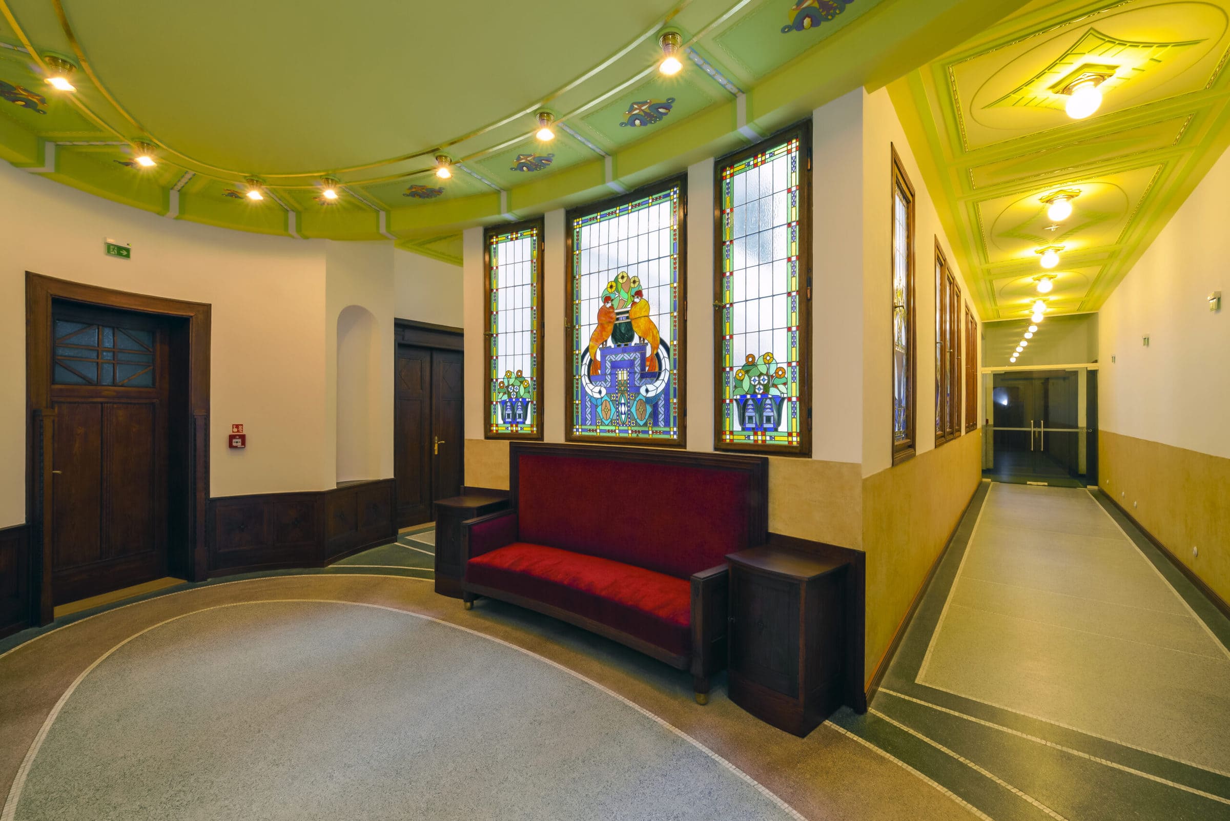V reprezentačních prostorách prvního poschodí je umístěna také Galerie Vladimíra Preclíka. Ve vyšších patrech byly naopak vybourány někdejší menší místnosti, které nebyly pro výstavní účely příliš vhodné, a vznikly tak otevřené ochozy kolem centrálního světlíku. Ve druhém a třetím poschodí jsou instalovány stálé expozice sestavené ze sbírek GMU. Čtvrté patro slouží krátkodobým výstavám, nyní je rozděleno na několik samostatných výstavních sálů: Bílá Kostka, Černá kostka a Prostor. Obnovy se dočkala také původní ocelová konstrukce prosklené střechy.
