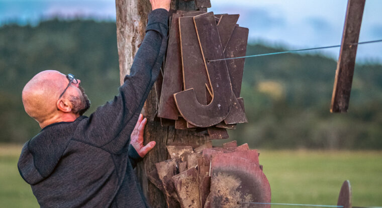 DUŠAN ZAHORANSKÝ (* 1972) je etablovaný sochař a pedagog. V devadesátých letech, ve slovenském prostředí, patřil mezi klíčové tvůrce kombinující video, fotografii a sochařské postupy. Od roku 2003 je trvale součástí české výtvarné scény. Jeho tvůrčí přístup je charakteristický syntézou tradičního sochařského řemesla s konceptuálními postupy. Instalace vychází z autorovy dlouhodobé analýzy vztahu mezi jazykovými strukturami a kognitivními procesy jedince. Autor je toho názoru, že verbální symbolika a rodný jazyk od raného věku zásadně determinují naše abstraktní uvažování a způsob, jakým si v mysli ustanovujeme okolní svět. Umění nám pomáhá odhalit manipulaci, pomáhá vynalézat a užívat si nové způsoby sdílení myšlenek a emocí.