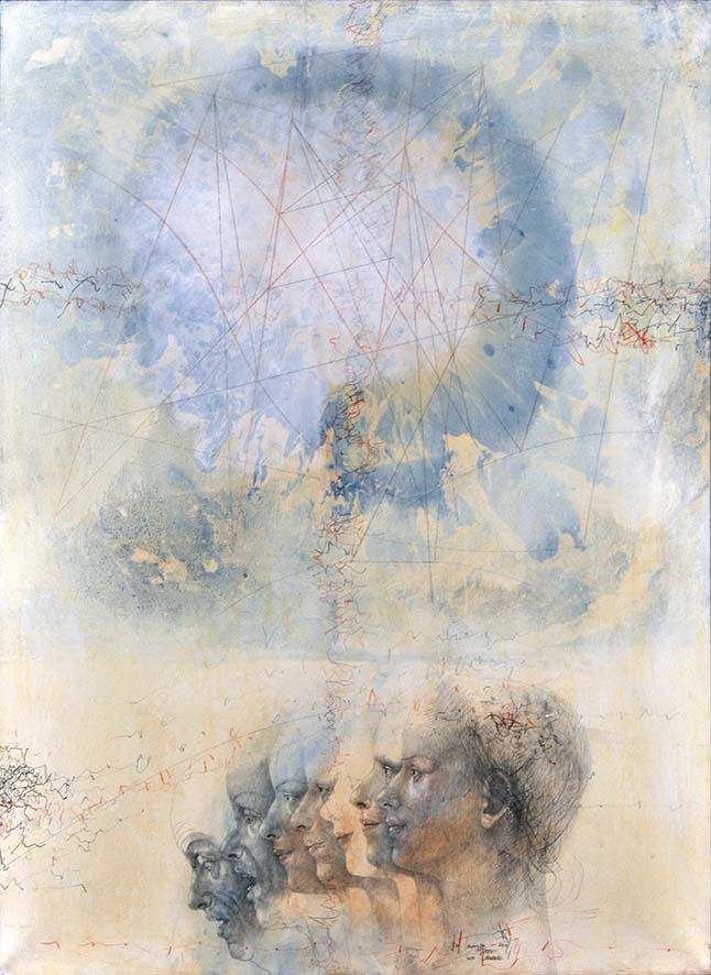 Prostor a čas – dva základní pojmy, v jejichž mantinelech se odehrává lidský život. Co to však přesně je? Zdánlivě jednoduchá otázka, avšak odpověď na ni hledají již několik století fyzikové a filozofové. Jiří Anderle (*1934) maluje svou představu na pomezí astrální abstrakce a drsného realismu, s níž zachycuje neúprosný zánik lidské bytosti.
