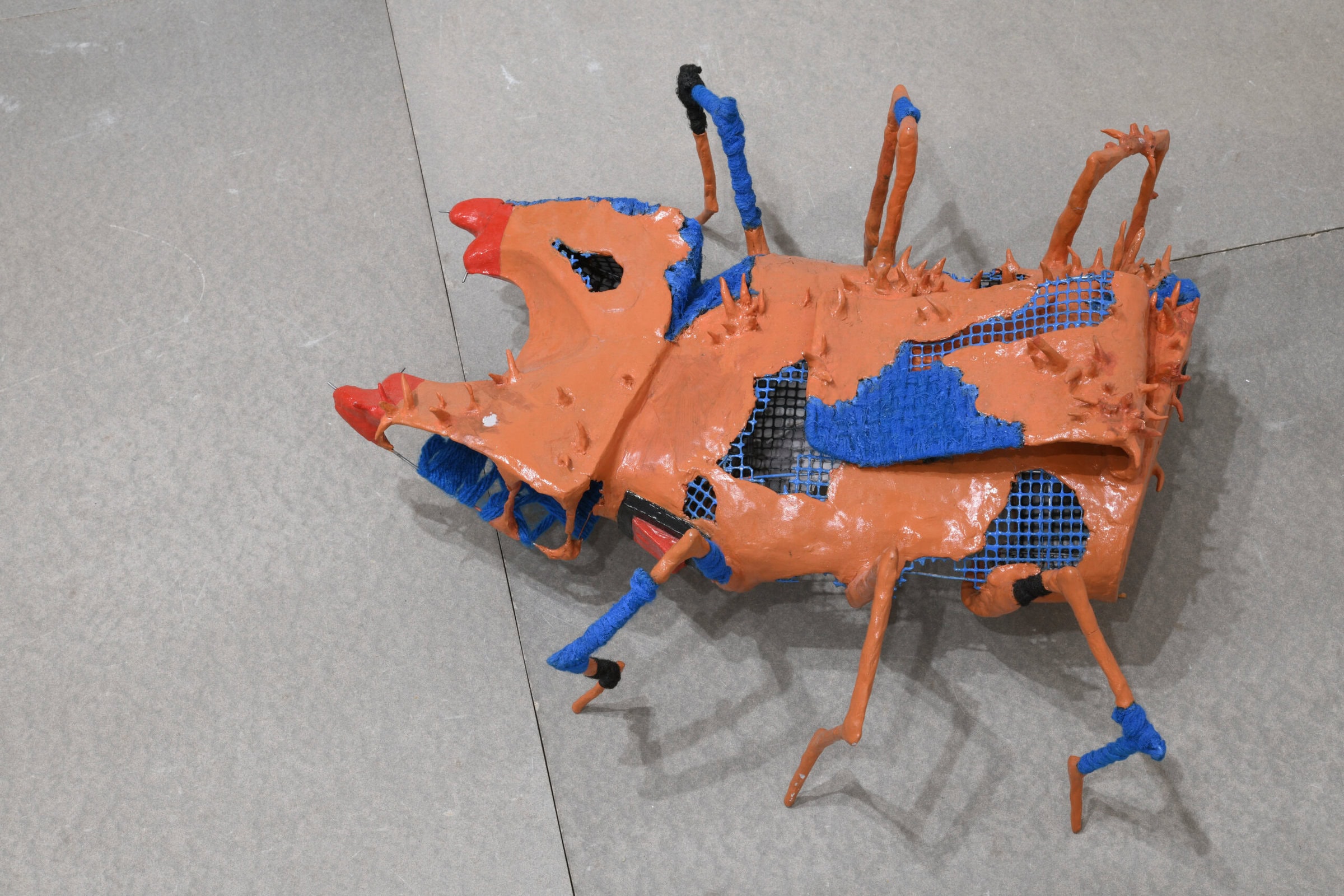 Prostorové objekty poskytují autorovi svobodu při hledání vlastního rukopisu, jelikož na nich může pracovat i bez znalosti sochařských technik. Proces tvorby umělce připomíná trend kutilství a ready made. Nalezené předměty se v jeho rukou mění v působivý a účinný prostředek pro ztvárnění situací. Základem objektů je drátěná konstrukce, která drží jejich tvar a je nosným prvkem pro bavlněnou přízi, jemné pletivo a samotvrdnoucí hmotu. Díla někdy doplňují i nalezené předměty. Bavlněná příze dodává tíživému tématu jemnost a stírá hranice genderového užití materiálů. Samotvrdnoucí hmota nepředstavuje typický sochařský materiál, ale díky jejímu ztuhnutí bez výpalu umožňuje kombinaci s přízí; přestože bývá používána spíše jako materiál pro tvorbu s dětmi, v rukou autora se tato hmota proměňuje v prosté předměty (například v tvora vzniklého zkřížením brouka a paralyzéru či v sérii zahradních koleček). Spontánní a zároveň soustředěné zpracování každého detailu utváří vzrušující scénu.