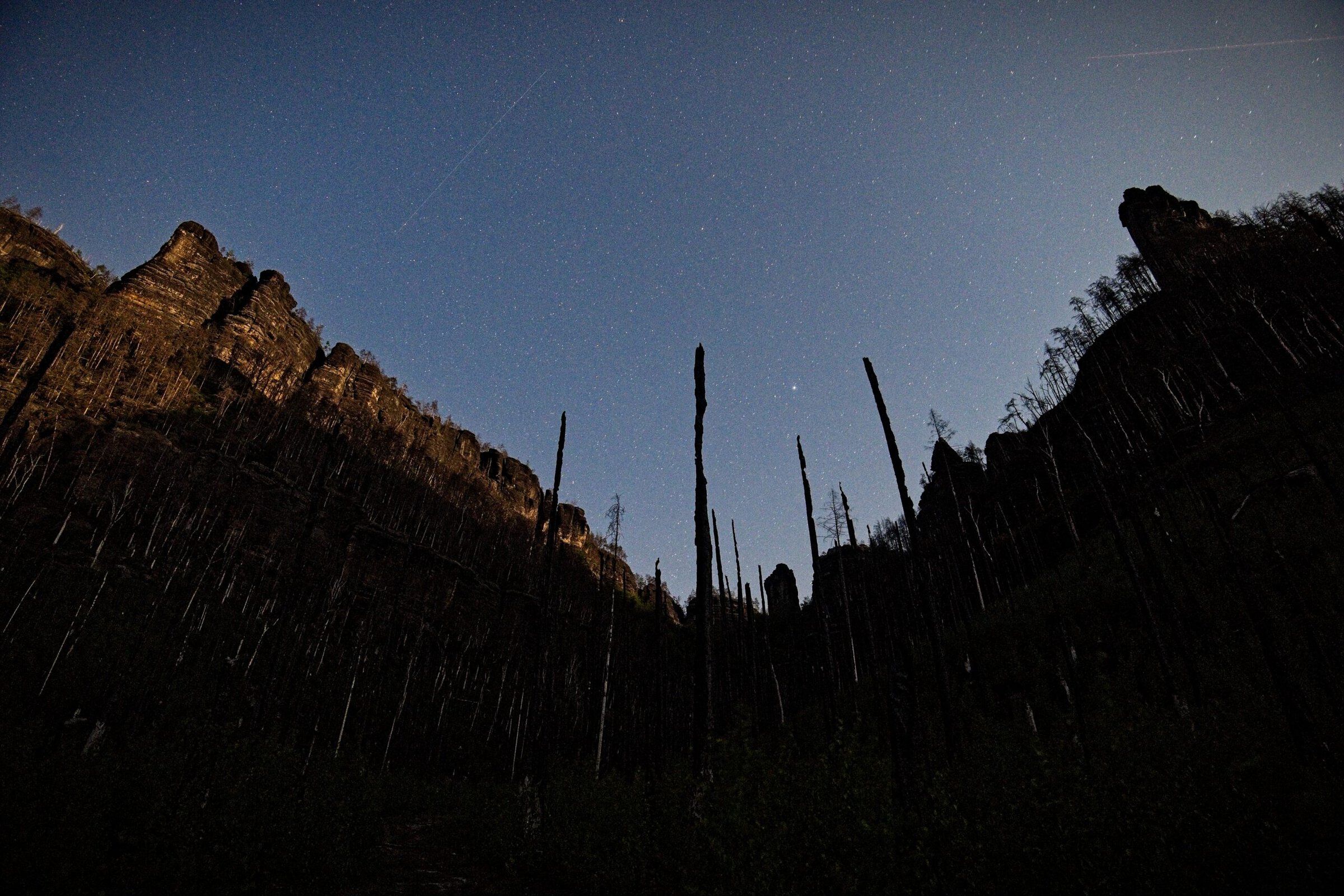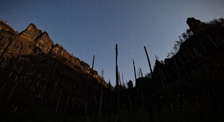 The sound installation work with the motif of a scorched landscape, specifically the area of Bohemian Switzerland. Nevertheless, it is not meant as a direct reference to any natural catastrophe but as a metaphor for inner transformation. The situation in Bohemian Switzerland is one of many warning signs showing us how fundamentally the climate – and, with it, the whole world around us – has been changing.