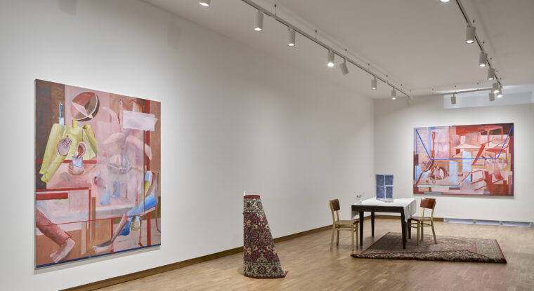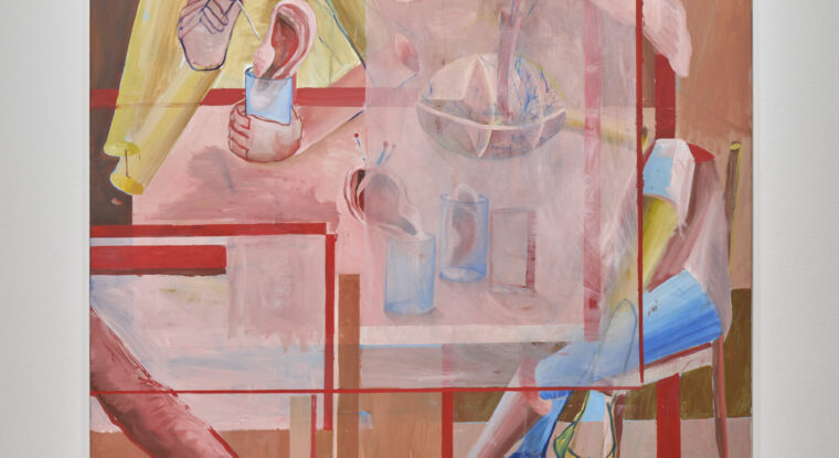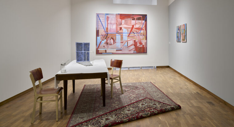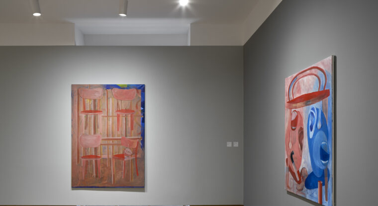 Výstava Padá ticho představí novou sérii maleb Nikoly Kopp Lourkové, v nichž se ticho stane prostorem soustředění a jemného pozorování. Autorka nechává běžné předměty – židle, jablka, nádoby, špendlíky či fragmenty těla – vystupovat z vrstvené, měkké barevnosti jako záznamy osobní i sdílené paměti. Motivy se objevují spíše v náznaku než v popisu, jako by se pomalu vynořovaly z mlžného pozadí. Malba pracuje s křehkou paletou růžových, okrových a tělových tónů, které doplňují výraznější barevné akcenty a jemně přerušené linie. Ticho zde není prázdnotou, ale pozorností – chvílí, kdy se svět ukazuje v detailech, jež jindy unikají.