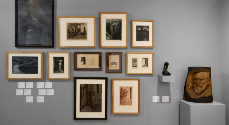 Bibliofilský časopis Moderní revue vznikl v říjnu 1894 z iniciativy Arnošta Procházky a Jiřího Karáska ze Lvovic a měl být tribunou pro širokou nastupující generaci. Soustředil kolem sebe ale především autory tíhnoucí k dekadenci či symbolismu a později i katolické moderně. Výstava představí několik z nich, např. F. Bílka, F. Koblihu, J. Konůpka, T. F. Šimona či J. Štursu. Výtvarníci tohoto okruhu byli silně inspirováni literaturou a filozofií a zdůrazňovali symbolické významy svých námětů. Během třicetileté existence časopisu se s ním umělci rozcházeli i sbližovali, a proto dnes neexistuje žádný definitivní seznam členů okruhu.