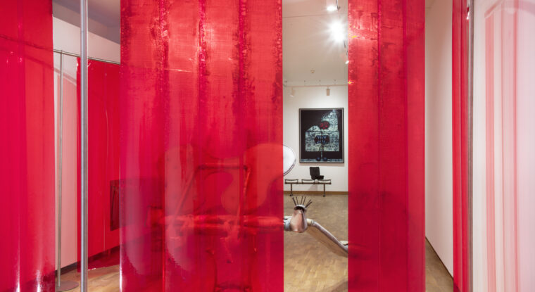 Pavlíčkova tvorba se na výstavě dialogicky setkává s dílem Mikuláše Medka, nazvaným Pokus o portrét markýze de Sade III (1969), ze sbírky královehradecké galerie. Medek, podobně jako Pavlíček, sleduje existenciální podmínky své doby a s kritickým nadhledem ztvárňuje individuální (často nejasné, absurdní či surreálné) dopady technologicky organizované společnosti. Oba umělci svébytně ukazují, že (post)industriální (post)moderna vystavuje člověka tak silnému tlaku, že se pod jeho účinky neohýbají pouze individuální emoce, ale dochází i k (de)formaci samotných životních funkcí a těl.